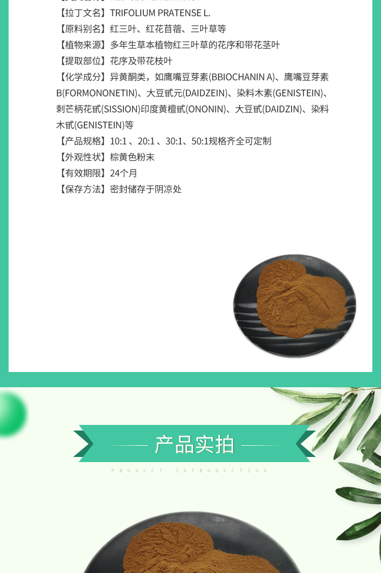 产品规格 :红车轴草提取物 异黄酮2.5% 8% 20% HPLC