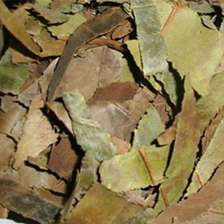 【植物特征】:呈长椭圆形或倒卵状椭圆形,长8~15厘米,宽2~6厘米;先端尖或突尖,基部近圆形或楔形,边缘具细密的锯齿,齿端棕色,但在幼时及萌芽枝上的叶缘具芒状锯齿;上面棕色或棕绿色,无毛,羽状脉,中脉凹入。下面中脉明显突出。叶片革质而脆。气微,微涩。
