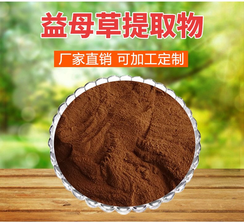 | 提取来源 | 该品为唇形科植物益母草Leonurus japonicus Houtt. 的新鲜憃干燥圆上部分。 |